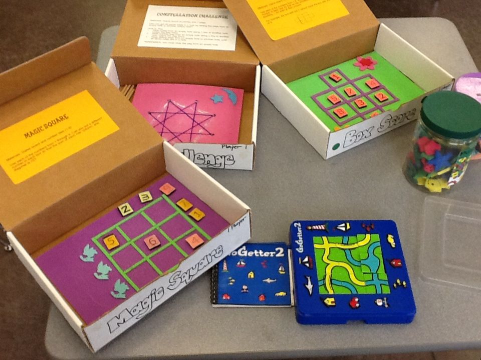 Room 1 – This room was for thinking games for one. We put in activities that one person can do that is related to math, logic, geometry, puzzles, patterns, etc.